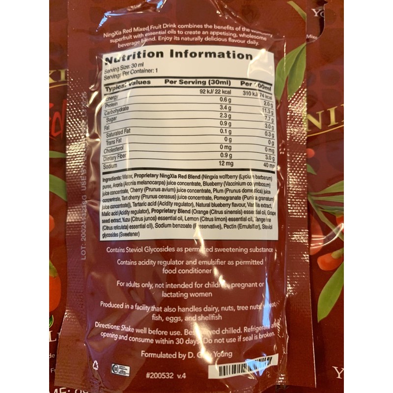Ningxia Red Nutrition Facts - Ningxia Red 30 Packs 1mth Ss Food Drinks Other Food Drinks On Carousell